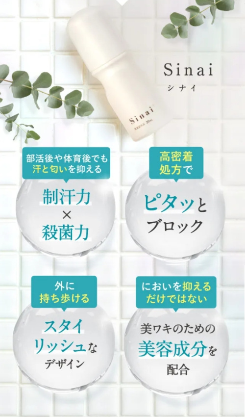 制汗剤を使うと黒ずんでしまうというのは知ってたんですけど、においがする方がイヤなのでガマンしていたのですが、「Sinai」は美しさの方もケアしてくれるので安心して使えます!